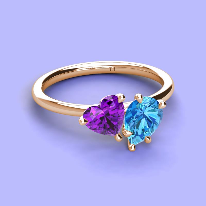 Heart Shape Amethyst & Pear Shape Blue Topaz 2.33 ctw Four Prong Womens 2 Stone Duo Engagement Ring 10K Rose Gold More Details ...