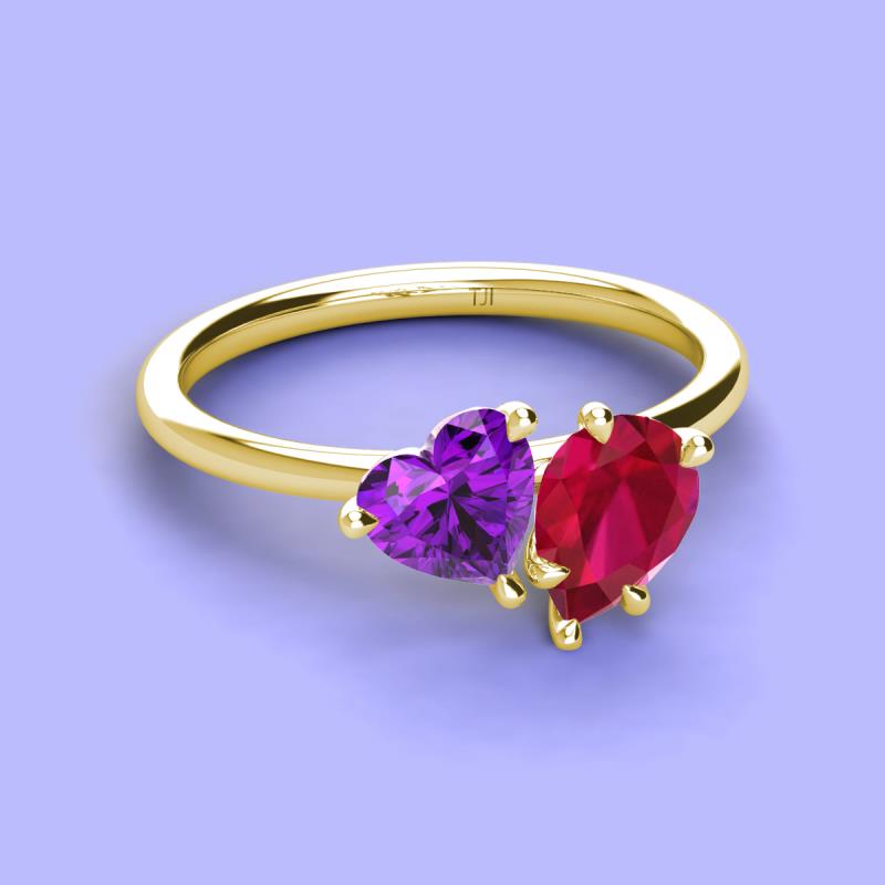 Heart Shape Amethyst & Pear Shape Lab Created Ruby 2.31 ctw Four Prong Womens 2 Stone Duo Engagement Ring 18K Yellow Gold More Details ...