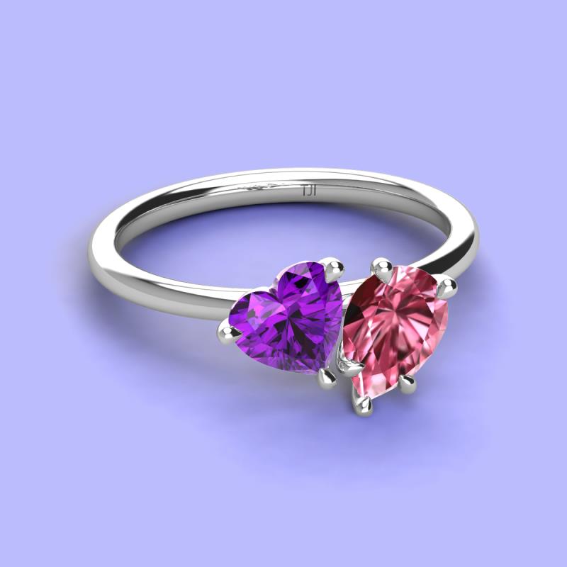 Heart Shape Amethyst & Pear Shape Pink Tourmaline 2.18 ctw Four Prong Womens 2 Stone Duo Engagement Ring 14K White Gold More Details ...