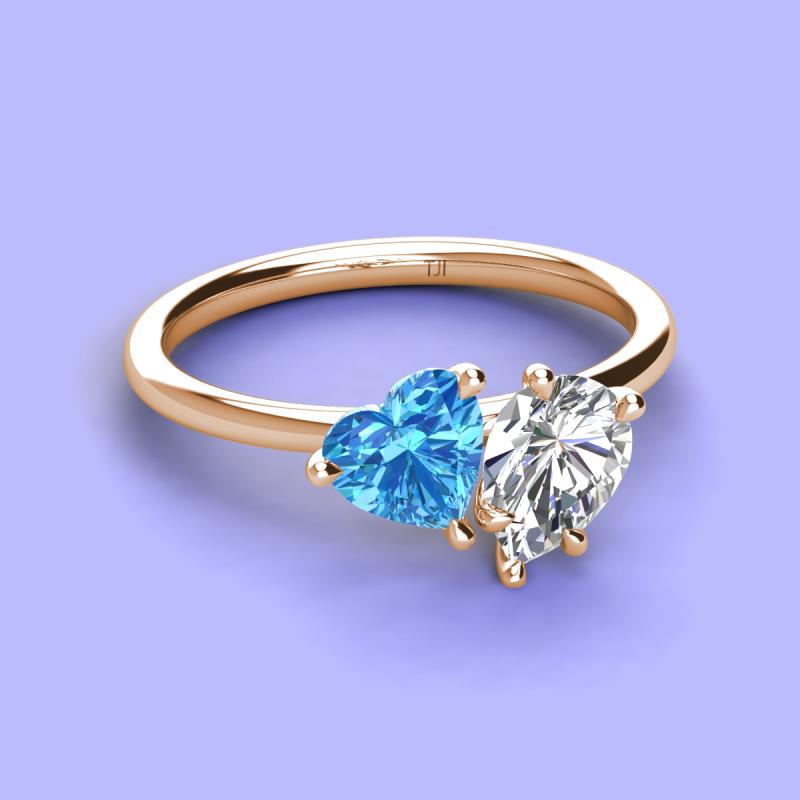 Heart Shape Blue Topaz & Pear Shape Forever Brilliant Moissanite 2.30 ctw Four Prong Womens 2 Stone Duo Engagement Ring 10K Rose Gold More Details ...