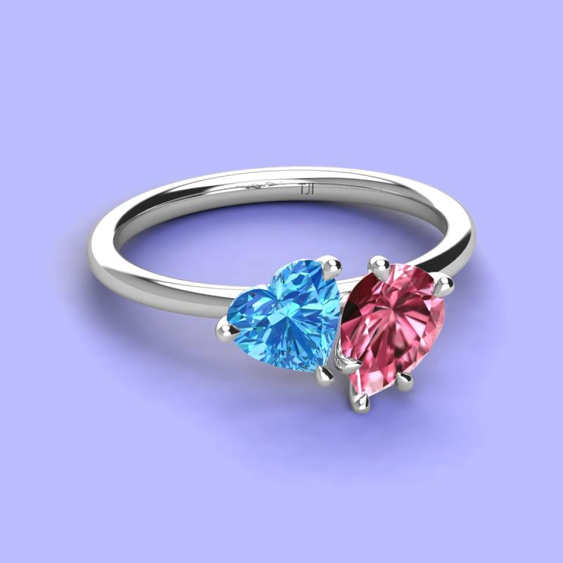 Heart Shape Blue Topaz & Pear Shape Pink Tourmaline 2.50 ctw Four Prong Womens 2 Stone Duo Engagement Ring 10K White Gold More Details ...