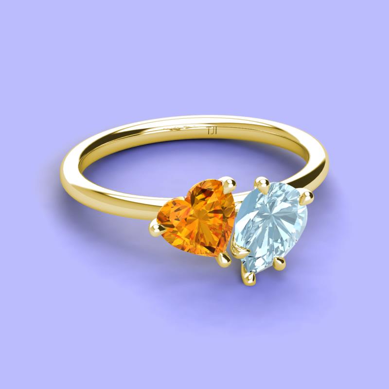 Heart Shape Citrine & Pear Shape Aquamarine 1.88 ctw Four Prong Womens 2 Stone Duo Engagement Ring 14K Yellow Gold More Details ...
