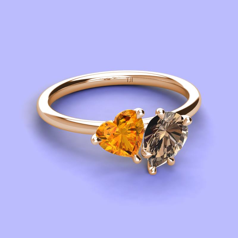 Heart Shape Citrine & Pear Shape Smoky Quartz 1.88 ctw Four Prong Womens 2 Stone Duo Engagement Ring 14K Rose Gold More Details ...