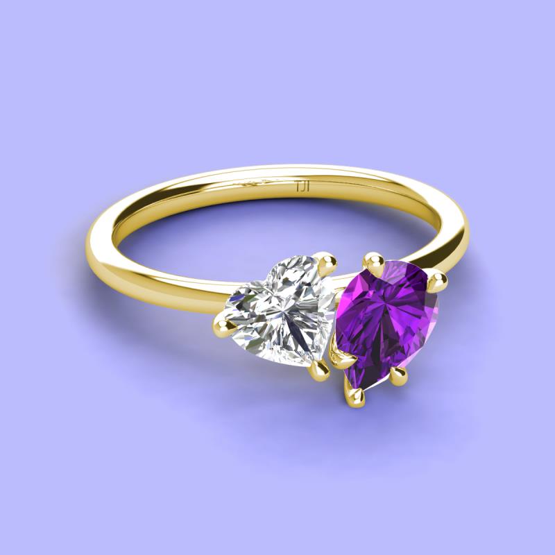 Heart Shape Forever Brilliant Moissanite & Pear Shape Amethyst 1.85 ctw Four Prong Womens 2 Stone Duo Engagement Ring 14K Yellow Gold More Details ...