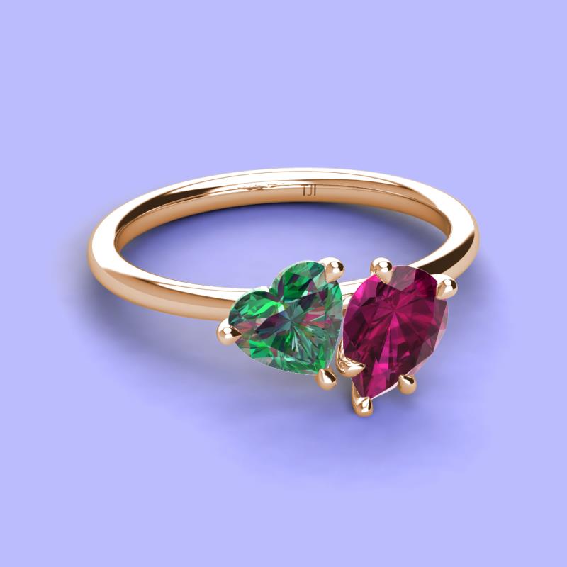 Heart Shape Lab Created Alexandrite & Pear Shape Rhodolite Garnet 2.20 ctw Four Prong Womens 2 Stone Duo Engagement Ring 10K Rose Gold More Details ...
