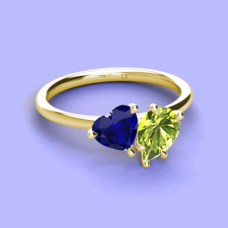 Heart Shape Lab Created Blue Sapphire & Pear Shape Peridot 2.40 ctw Four Prong Womens 2 Stone Duo Engagement Ring 10K Yellow Gold More Details ...