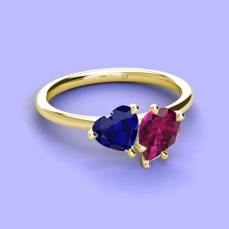 Heart Shape Lab Created Blue Sapphire & Pear Shape Rhodolite Garnet 2.35 ctw Four Prong Womens 2 Stone Duo Engagement Ring 18K Yellow Gold More Details ...