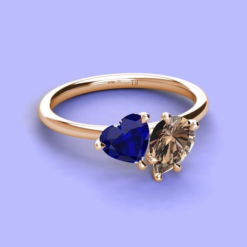 Heart Shape Lab Created Blue Sapphire & Pear Shape Smoky Quartz 2.10 ctw Four Prong Womens 2 Stone Duo Engagement Ring 10K Rose Gold More Details ...