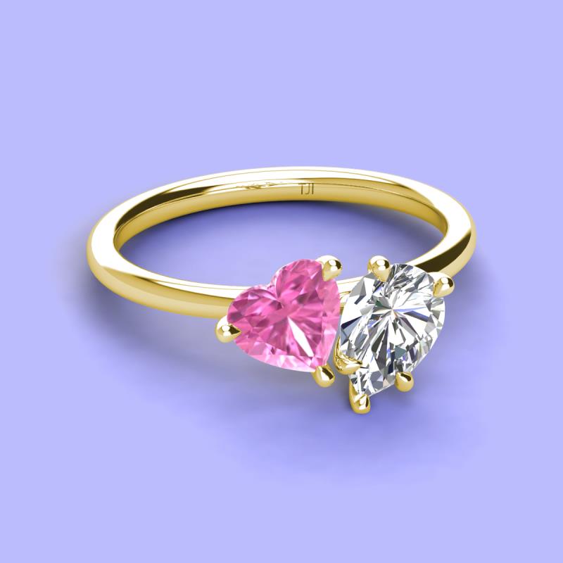 Heart Shape Lab Created Pink Sapphire & Pear Shape Forever One Moissanite 2.20 ctw Four Prong Womens 2 Stone Duo Engagement Ring 18K Yellow Gold More Details ...