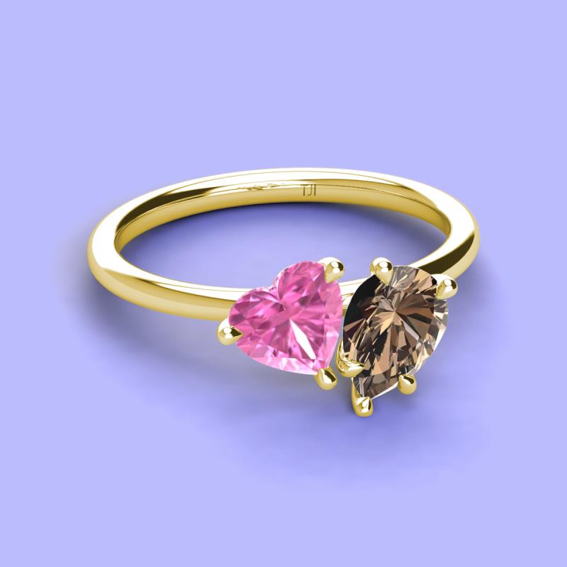 Heart Shape Lab Created Pink Sapphire & Pear Shape Smoky Quartz 2.10 ctw Four Prong Womens 2 Stone Duo Engagement Ring 18K Yellow Gold More Details ...