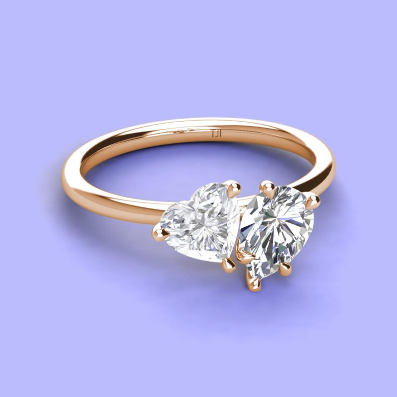 There's something so romantic, and oh-so-enchanting about this duo two stone engagement ring. This spectacular design features Heart Shape Lab Created White Sapphire and Pear Shape Forever Brilliant Moissanite that sets at slight angles towards each other.