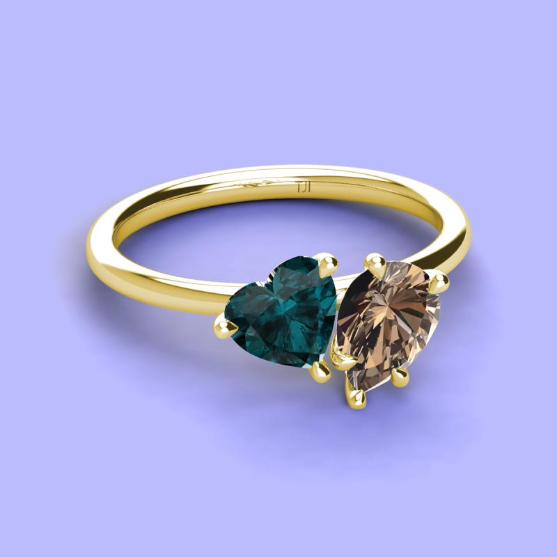Heart Shape London Blue Topaz & Pear Shape Smoky Quartz 2.20 ctw Four Prong Womens 2 Stone Duo Engagement Ring 18K Yellow Gold More Details ...