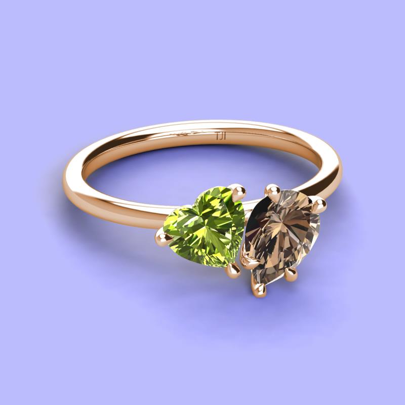 Heart Shape Peridot & Pear Shape Smoky Quartz 2.15 ctw Four Prong Womens 2 Stone Duo Engagement Ring 14K Rose Gold More Details ...