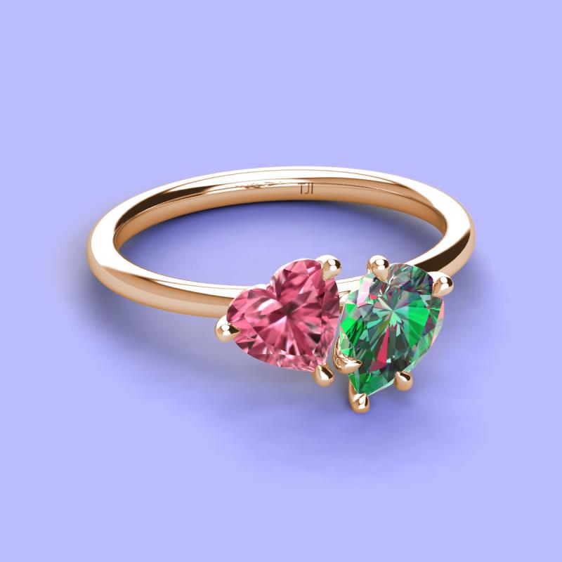 Heart Shape Pink Tourmaline & Pear Shape Lab Created Alexandrite 2.43 ctw Four Prong Womens 2 Stone Duo Engagement Ring 18K Rose Gold More Details ...