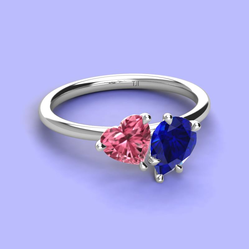 Heart Shape Pink Tourmaline & Pear Shape Lab Created Blue Sapphire 2.43 ctw Four Prong Womens 2 Stone Duo Engagement Ring 18K White Gold More Details ...