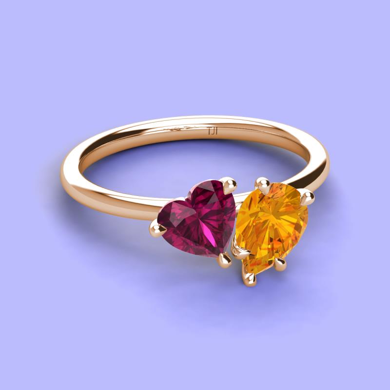 Heart Shape Rhodolite Garnet & Pear Shape Citrine 2.30 ctw Four Prong Womens 2 Stone Duo Engagement Ring 18K Rose Gold More Details ...
