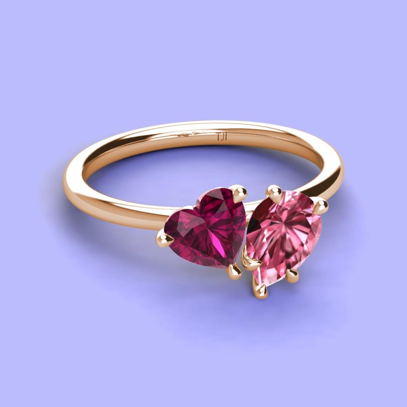 Heart Shape Rhodolite Garnet & Pear Shape Pink Tourmaline 2.60 ctw Four Prong Womens 2 Stone Duo Engagement Ring 18K Rose Gold More Details ...