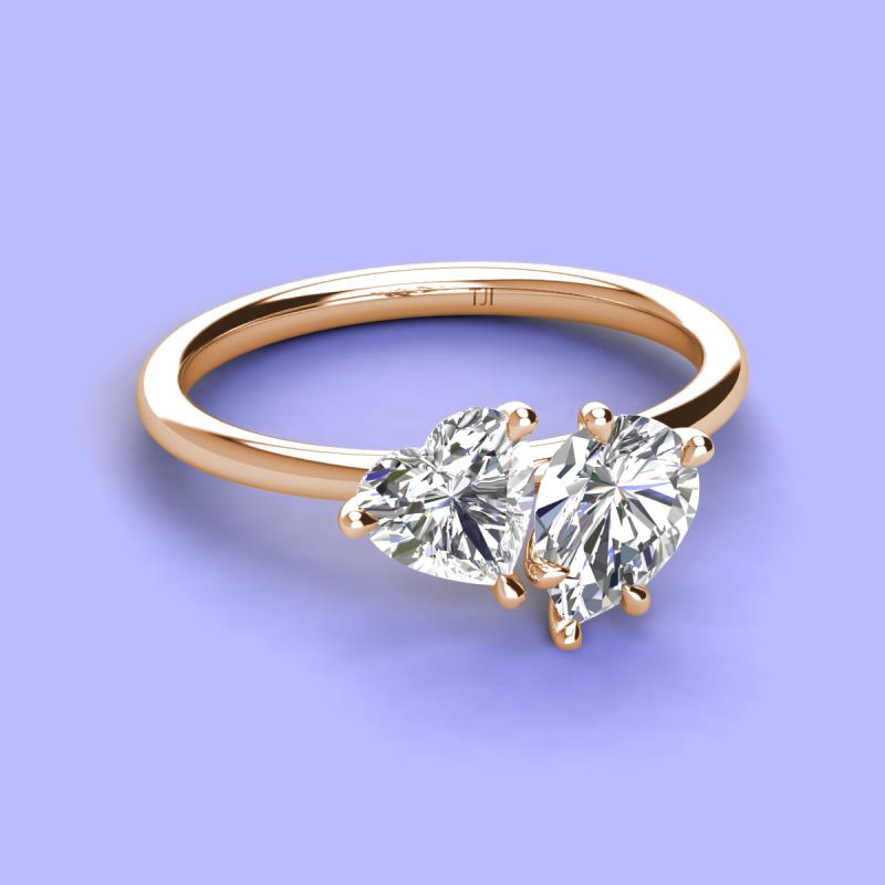 There's something so romantic, and oh-so-enchanting about this duo two stone engagement ring. This spectacular design features IGI Certified Heart Shape Lab Grown Diamond and Pear Shape Forever Brilliant Moissanite that sets at slight angles towards each other.