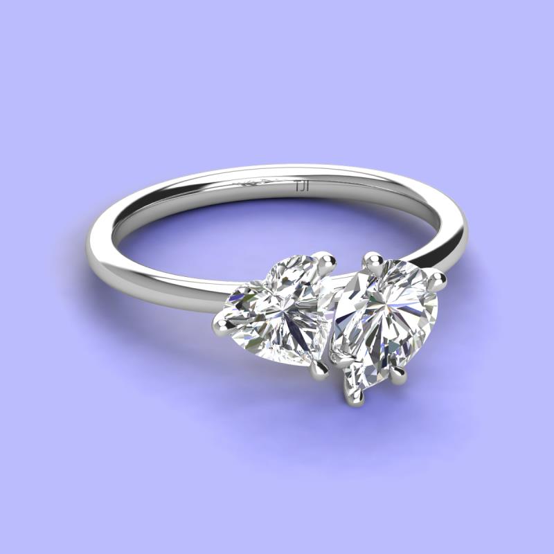 There's something so romantic, and oh-so-enchanting about this duo two stone engagement ring. This spectacular design features IGI Certified Pear Shape Lab Grown Diamond & Heart Shape Forever Brilliant Moissanite that sets at slight angles towards each other.
