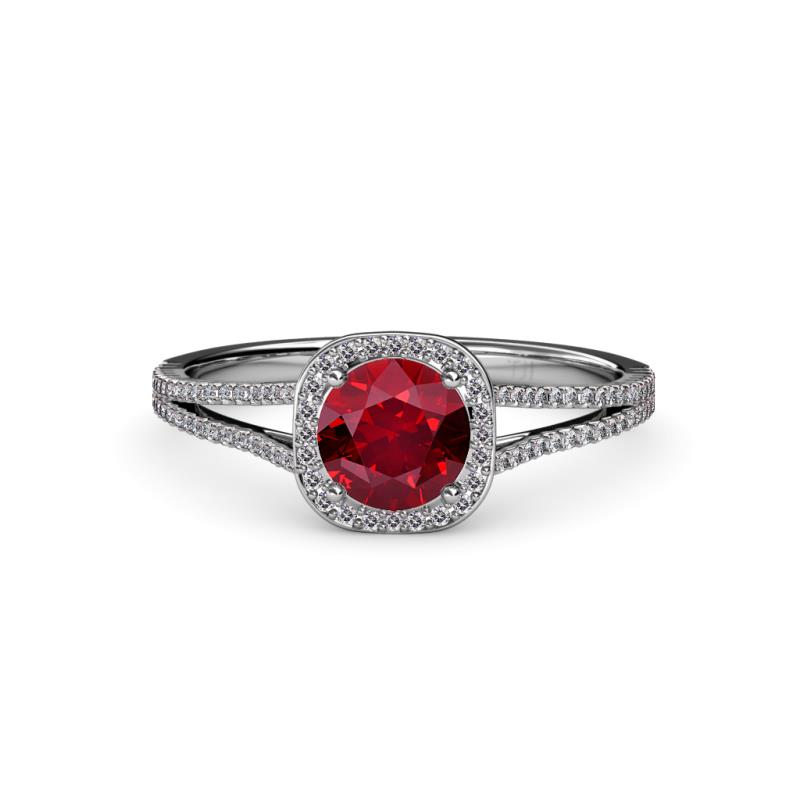 Ruby and Diamond Womens Halo Engagement Ring 1.20 ctw 14K White Gold More Details ...