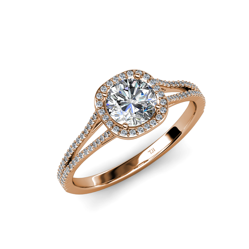 Diamond Four Prong Semi Mount Womens Halo Engagement Ring Setting 0.25 ctw 14K Rose Gold More Details ...
