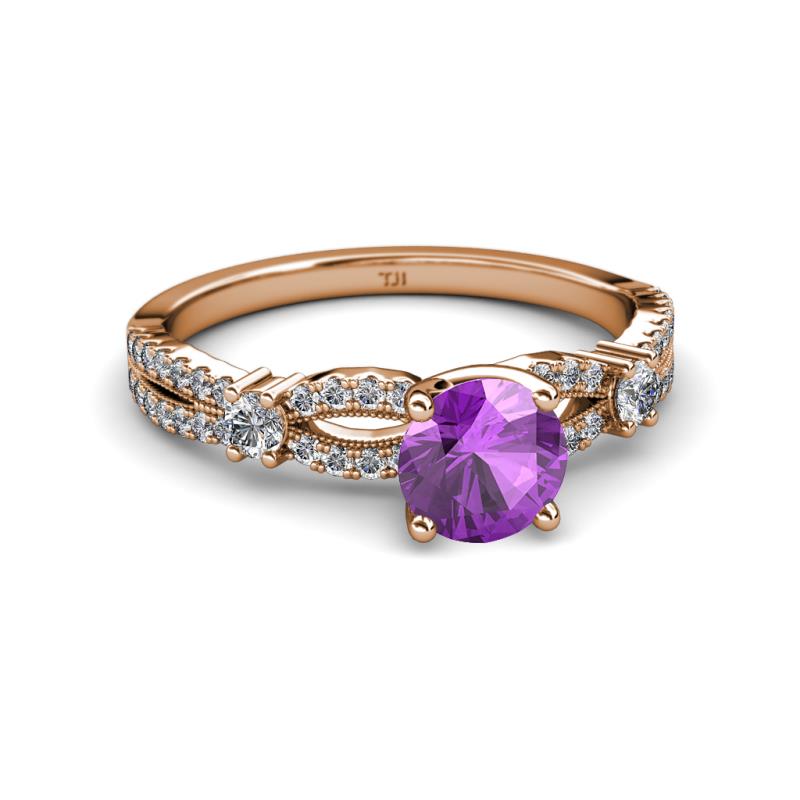 Amethyst and Diamond Split Shank Womens Engagement Ring 1.32 ctw 18K Rose Gold More Details ...