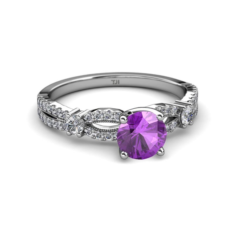 Amethyst and Diamond Split Shank Womens Engagement Ring 1.32 ctw 14K White Gold More Details ...