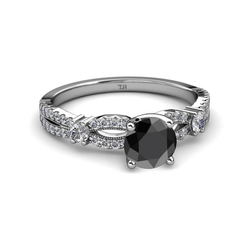 Black and White Diamond Split Shank Womens Engagement Ring 1.45 ctw 14K White Gold More Details ...