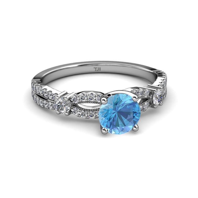 Blue Topaz and Diamond Split Shank Womens Engagement Ring 1.50 ctw Platinum More Details ...