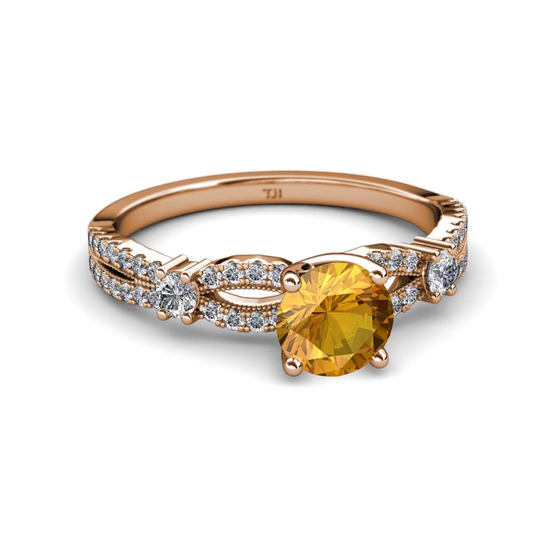 Citrine and Diamond Split Shank Womens Engagement Ring 1.32 ctw 18K Rose Gold More Details ...