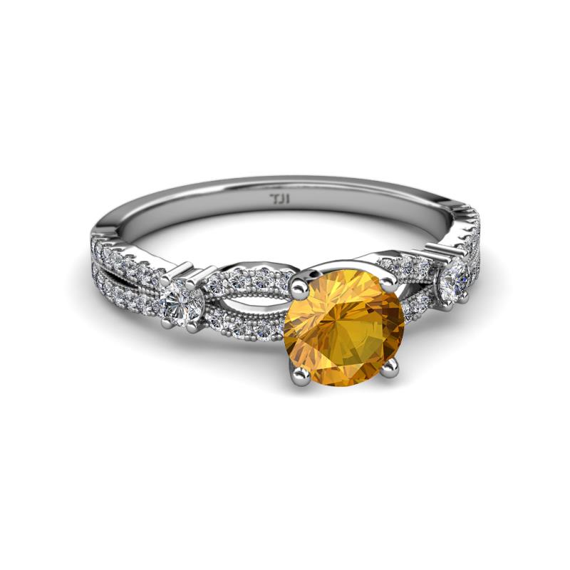 Citrine and Diamond Split Shank Womens Engagement Ring 1.32 ctw Platinum More Details ...