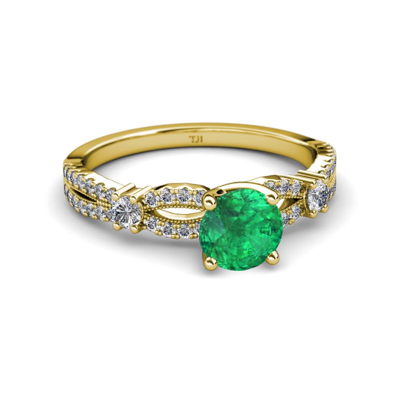 Emerald and Diamond Split Shank Womens Engagement Ring 1.17 ctw 14K Yellow Gold More Details ...