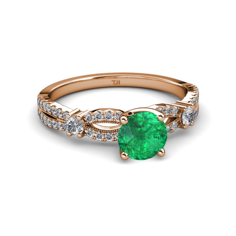 Emerald and Diamond Split Shank Womens Engagement Ring 1.17 ctw 14K Rose Gold More Details ...