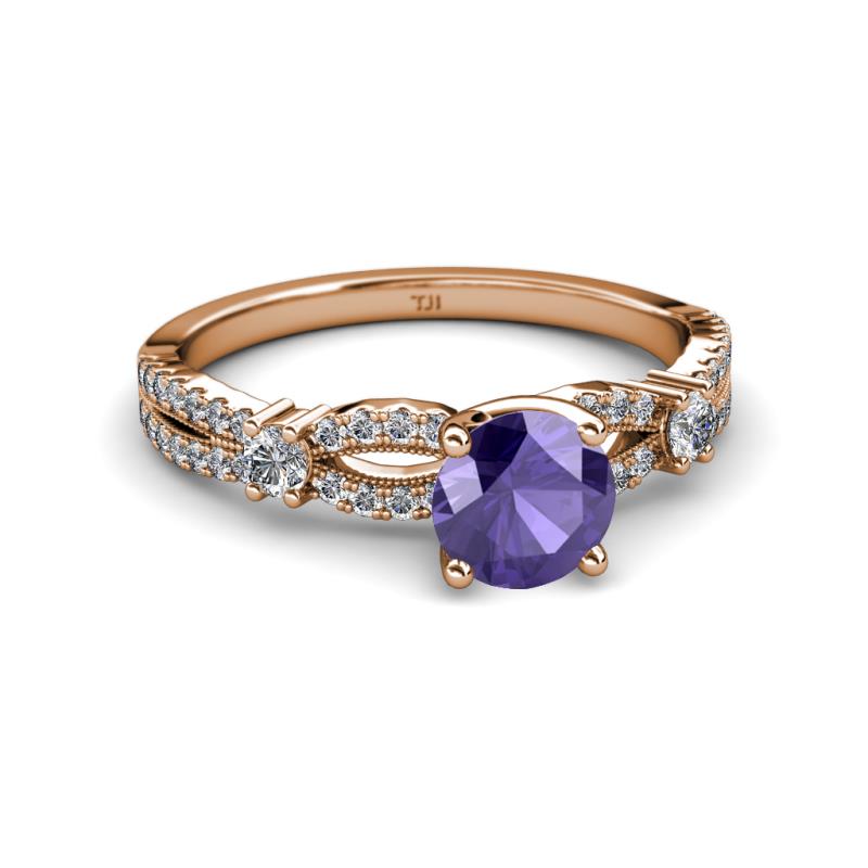 Iolite and Diamond Split Shank Womens Engagement Ring 1.32 ctw 14K Rose Gold More Details ...