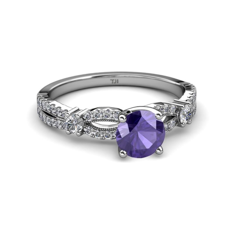 Iolite and Diamond Split Shank Womens Engagement Ring 1.32 ctw 18K White Gold More Details ...