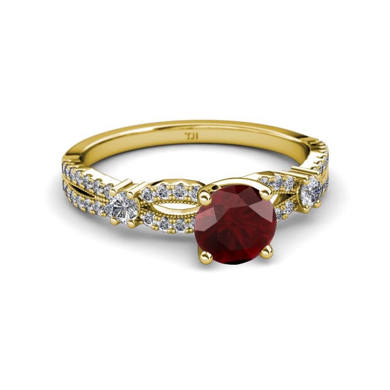 Red Garnet and Diamond Split Shank Womens Engagement Ring 1.50 ctw 18K Yellow Gold More Details ...
