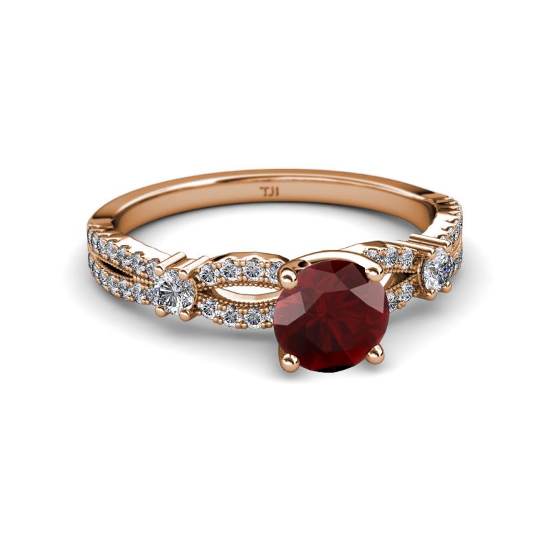 Red Garnet and Diamond Split Shank Womens Engagement Ring 1.50 ctw 18K Rose Gold More Details ...