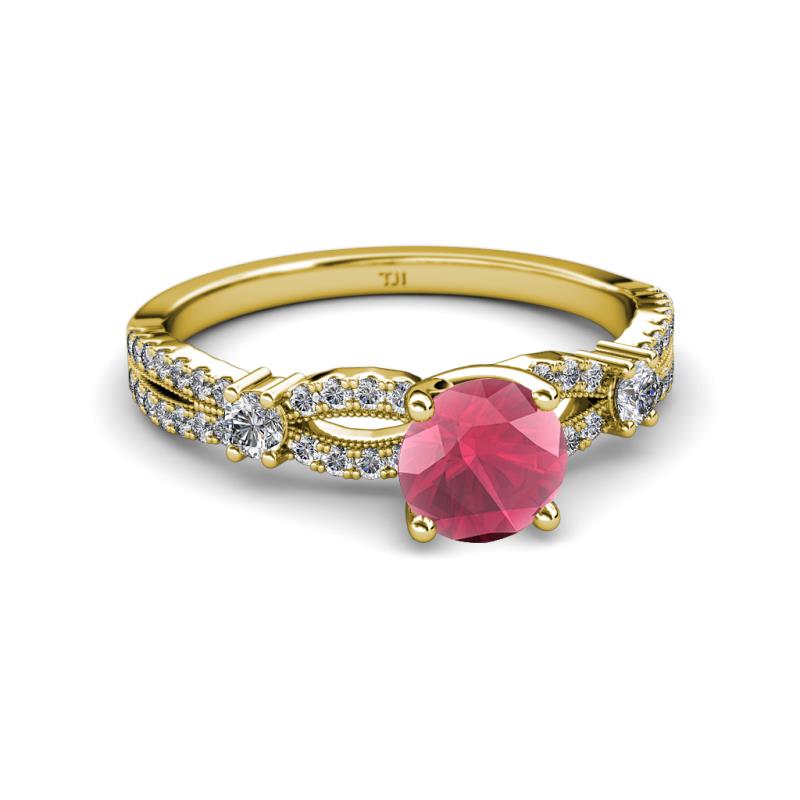 Rhodolite Garnet and Diamond Split Shank Womens Engagement Ring 1.45 ctw 18K Yellow Gold More Details ...