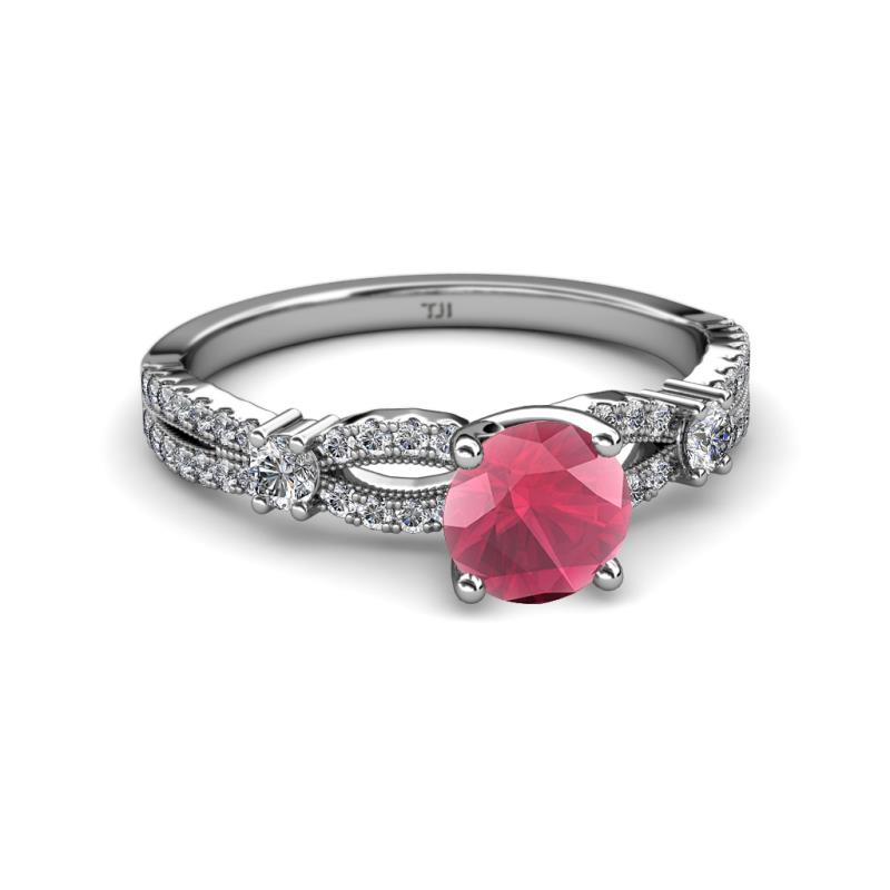 Rhodolite Garnet and Diamond Split Shank Womens Engagement Ring 1.45 ctw 14K White Gold More Details ...