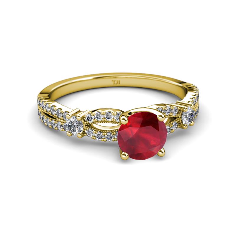 Ruby and Diamond Split Shank Womens Engagement Ring 1.40 ctw 18K Yellow Gold More Details ...