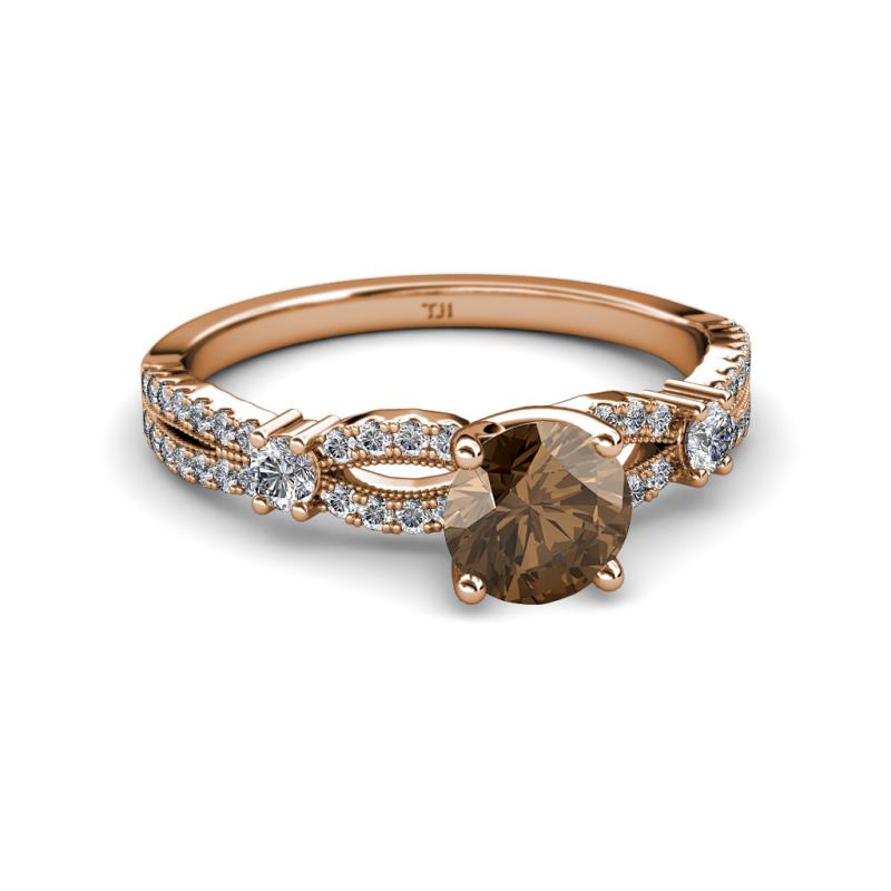Smoky Quartz and Diamond Split Shank Womens Engagement Ring 1.45 ctw 18K Rose Gold More Details ...