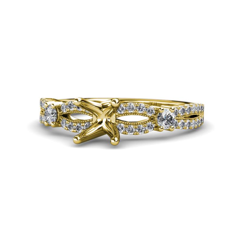 Diamond Split Shank Four Prong Semi Mount Engagement Ring (VS2-SI1, F-G) 0.45 cttw in 18K Yellow Gold. More Details ...