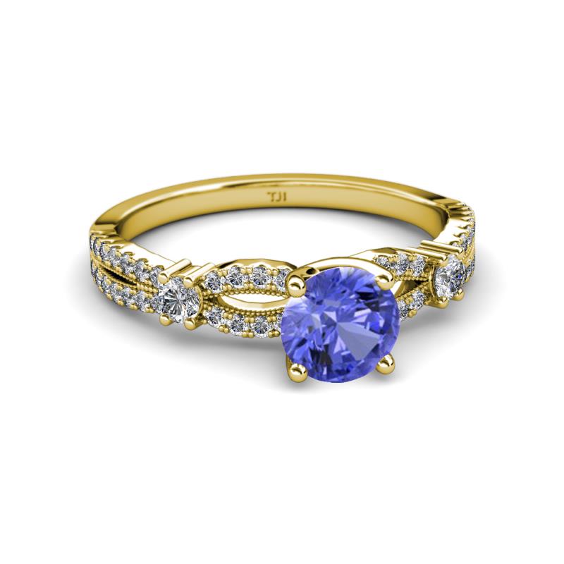 Tanzanite and Diamond Split Shank Womens Engagement Ring 1.37 ctw 18K Yellow Gold More Details ...