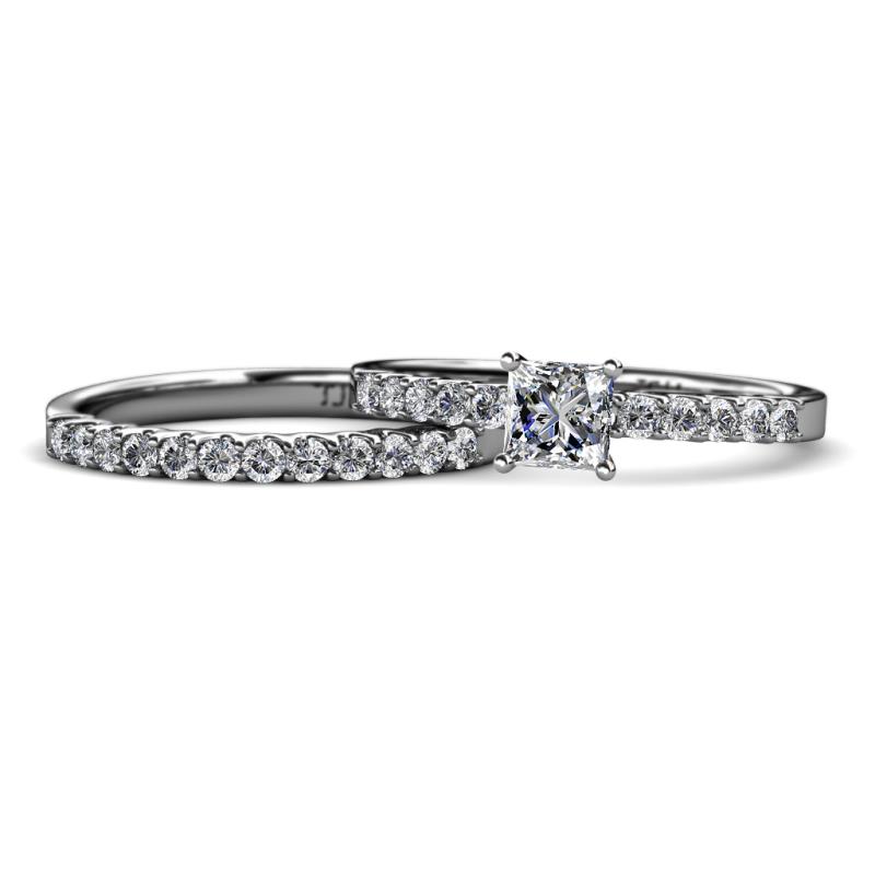 Diamond Four Prong Semi Mount Engagement Ring Setting & Matching Diamond Band 0.45 ctw 14K White Gold More Details ...