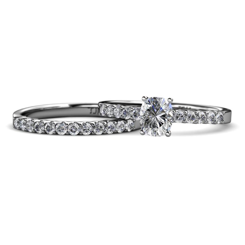 Diamond Four Prong Semi Mount Engagement Ring Setting & Matching Diamond Band 0.45 ctw 18K White Gold More Details ...
