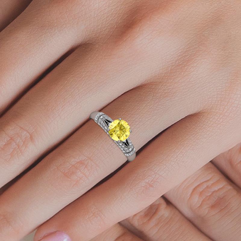 1.52 ctw Classic Yellow Sapphire Accented Lab Grown Diamonds Solitaire Plus Women Engagement Ring in 14K White Gold. More Details ...