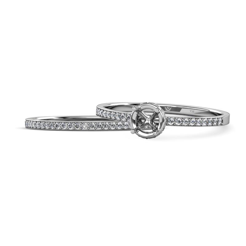 Diamond Semi Mount Halo Engagement Ring Setting & Matching Diamond Band 0.25 ctw Platinum More Details ...