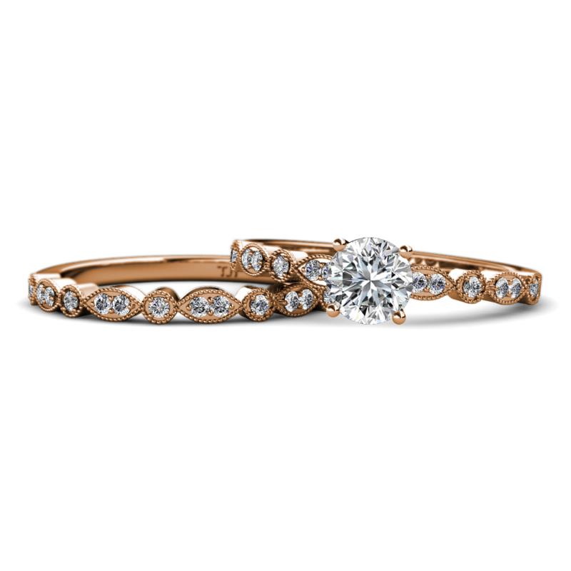 Diamond Four Prong Semi Mount Marquise and Dot Engagement Ring Setting & Matching Diamond Band 0.25 ctw 14K Rose Gold More Details ...
