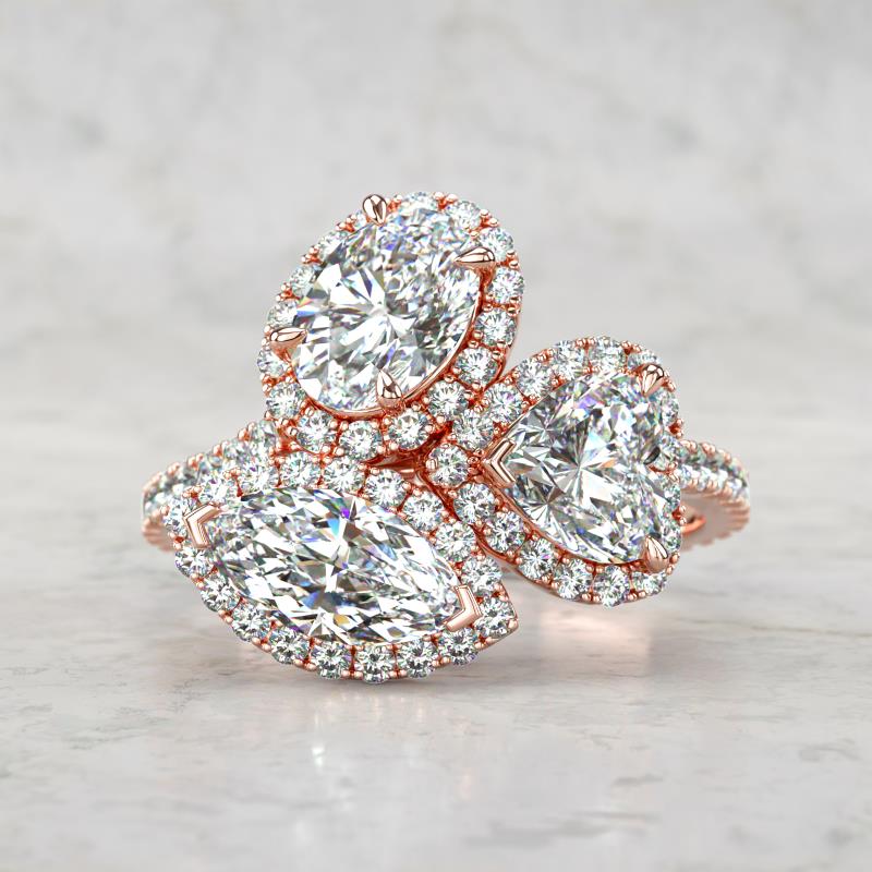 3.25 ctw IGI Certified Multi Shape Lab Grown Diamond Oval, Heart & Marquise Prong Set Women Three Stone Engagement Ring 14K Rose Gold More Details ...