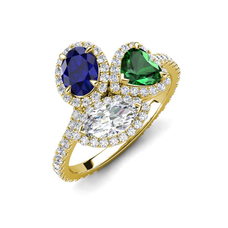 3.28 ctw Multi Shape Oval Created Blue Sapphire, Heart Created Emerald & Marquise Lab Grown Diamond Prong Set Women Three Stone Engagement Ring 14K Yellow Gold More Details ...